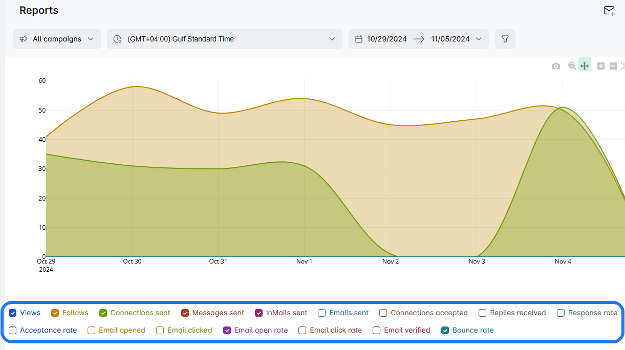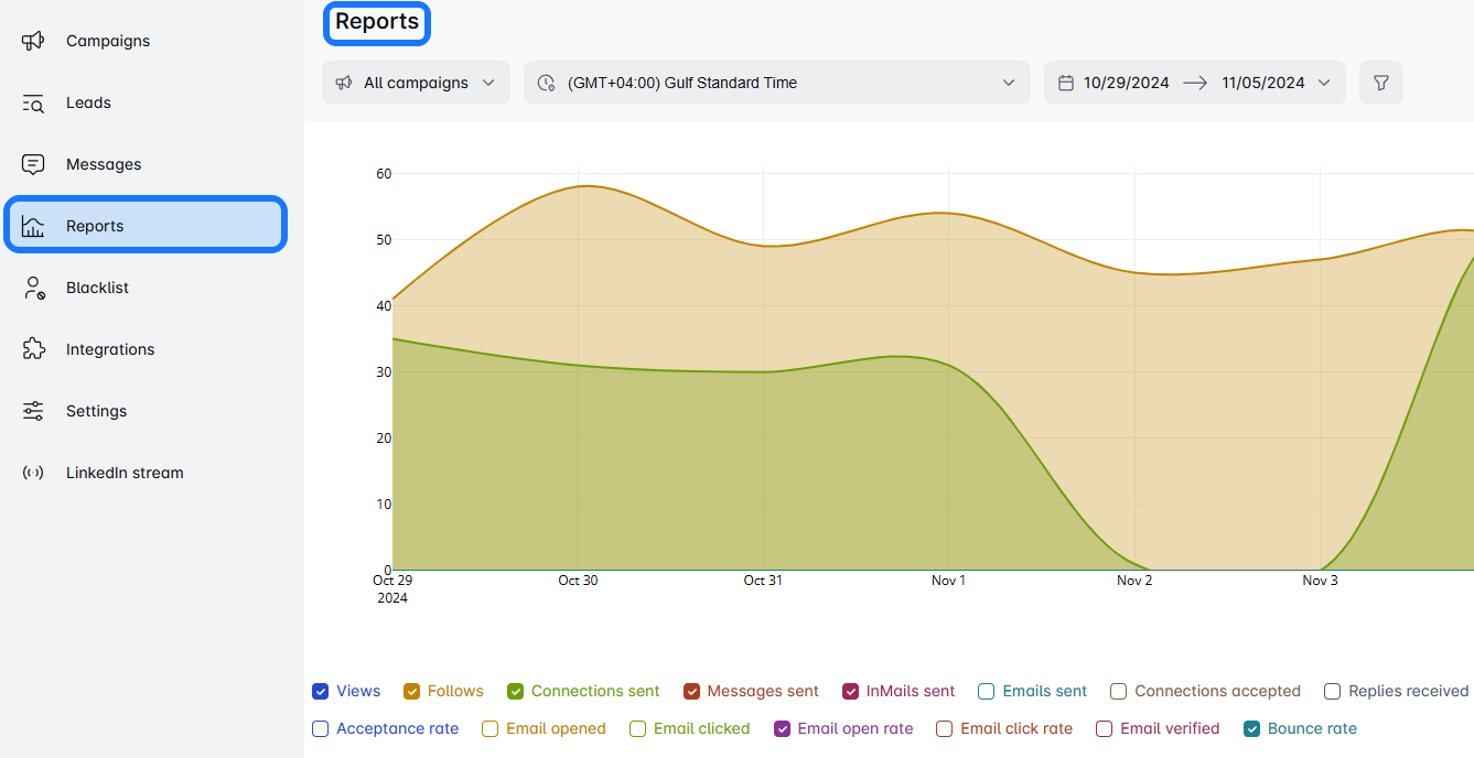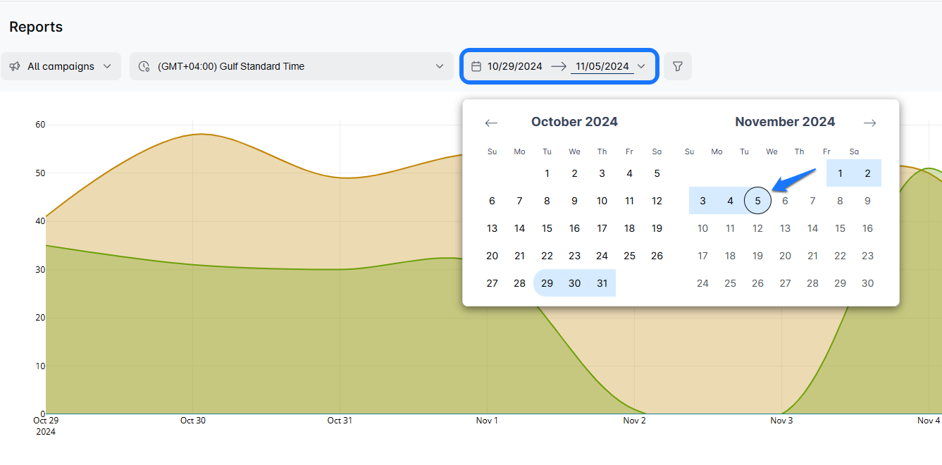The Reports page is where all your stats and figures live. Here, you're in commandโyou can choose the timeframe you want to analyze (start and end date), whether it's the last week, month, or a custom range.