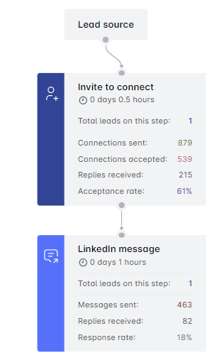 Scroll down for a detailed breakdown of each campaign step. See how many connections were sent, replies received, and emails/messages dispatched by SMARX. It varies based on your campaign type and the steps included. Easily spot where your leads stand in the campaign.