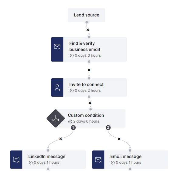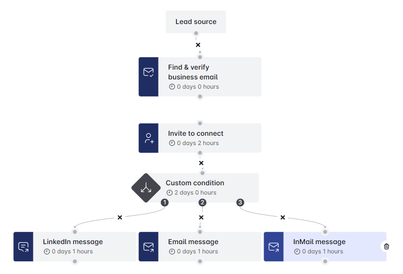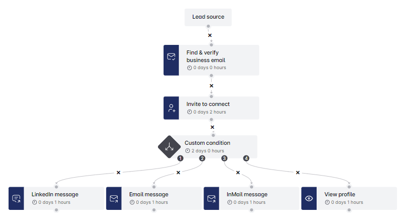 Leverage Custom Conditions in the SMARX to optimize your campaigns and workflow. With up to five tailored outputs, you can handle leads based on connection status, email verification, and InMail options, creating seamless, efficient sequences. Start using Custom Conditions to elevate your campaigns and engage smarter! 🚀