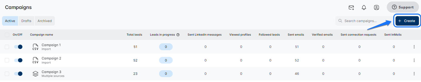 First up, head over to the Campaigns dashboard on SMARX. Look for the ‘Create’ button in the upper right corner and give it a click. It’s your first step to something great!