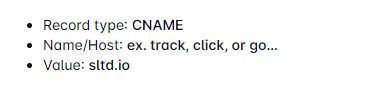 - Since we’re creating a subdomain, you need to use the prefix you’ve created (e.g., track, click, go, etc.) and paste it into SMARX under the Your subdomain field.